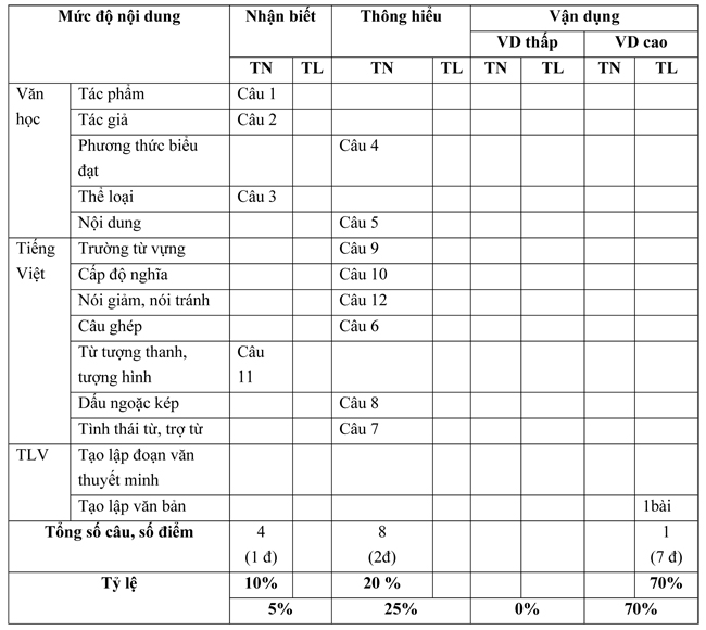 ĐỀ KIỂM TRA HỌC KỲ I MÔN NGỮ VĂN LỚP 8 |
