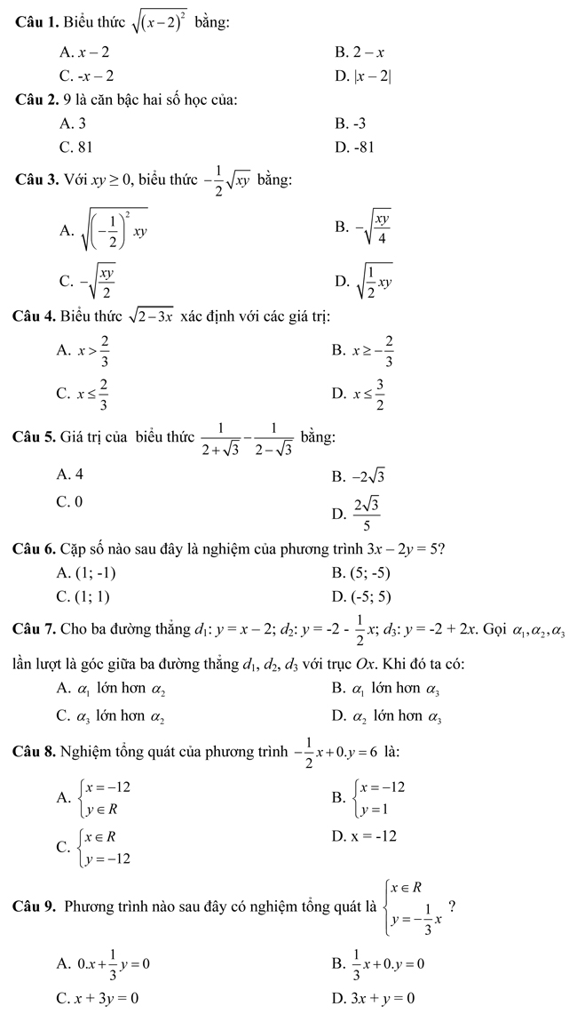 Trong các câu có các lựa chọn A, B, C, D chỉ khoanh tròn vào một chữ in hoa đứng trước câu trả lời đúng.