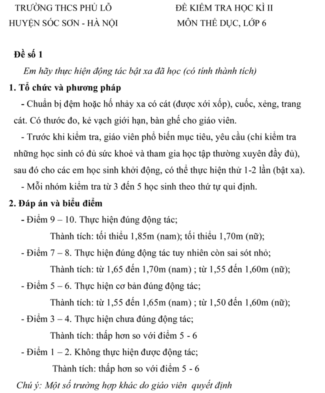 Tìm hiểu thêm »Đề kiểm tra học kì II lớp 6 môn Thể dục trường THCS Phủ Lỗ, Sóc Sơn - Hà Nội (Đề số 1)
