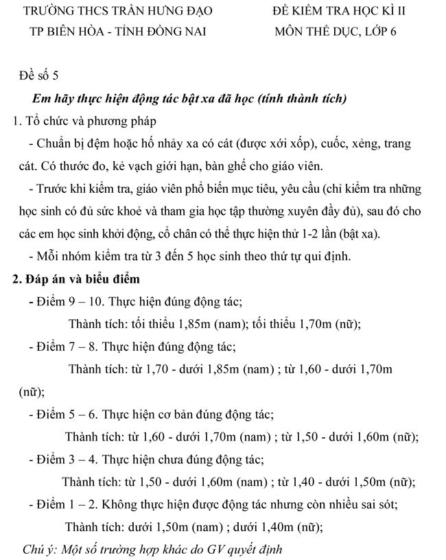 Tìm hiểu thêm »Đề kiểm tra học kì II lớp 6 môn Thể dục của trường THCS Trần Hưng Đạo, TP Biên Hòa - tỉnh Đồng Nai