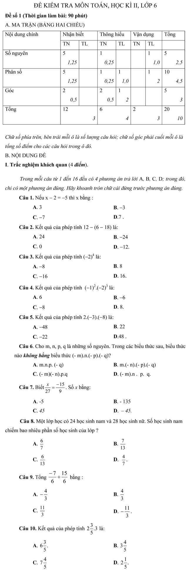 Tìm hiểu thêm »Đề kiểm tra học kì II môn Toán dành cho học sinh THCS lớp 6 - Đề số 1