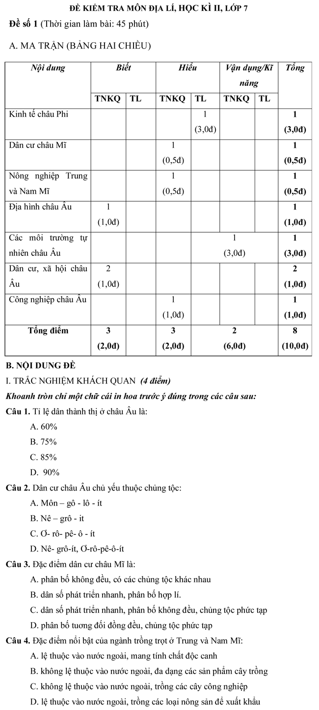 Tìm hiểu thêm »Đề kiểm tra học kì II môn Địa lí dành cho học sinh THCS lớp 7 - Đề số 1