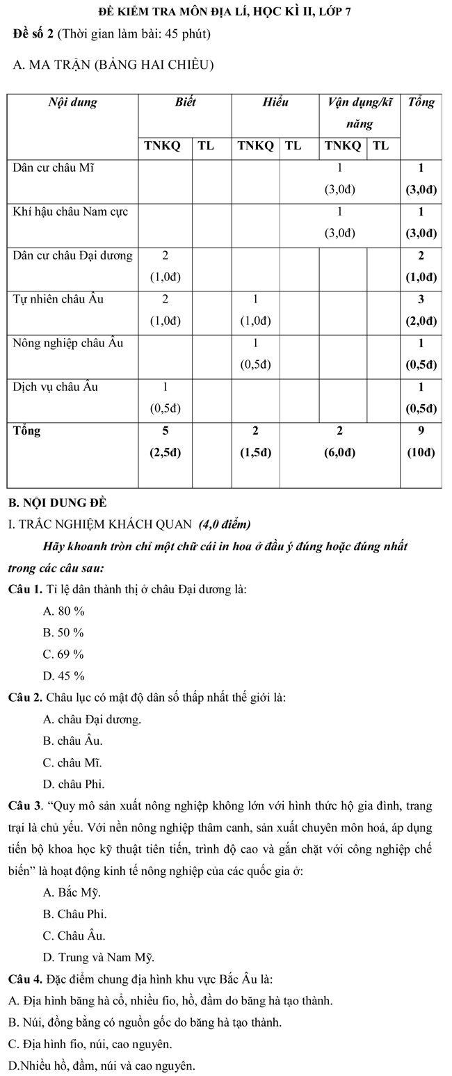 Tìm hiểu thêm »Đề kiểm tra học kì II môn Địa lí dành cho học sinh THCS lớp 7 - Đề số 2