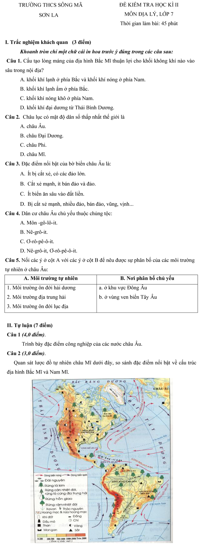 Tìm hiểu thêm »Đề kiểm tra học kì II môn Địa lí lớp 7 - Trường THCS Sông Mã, Sơn La