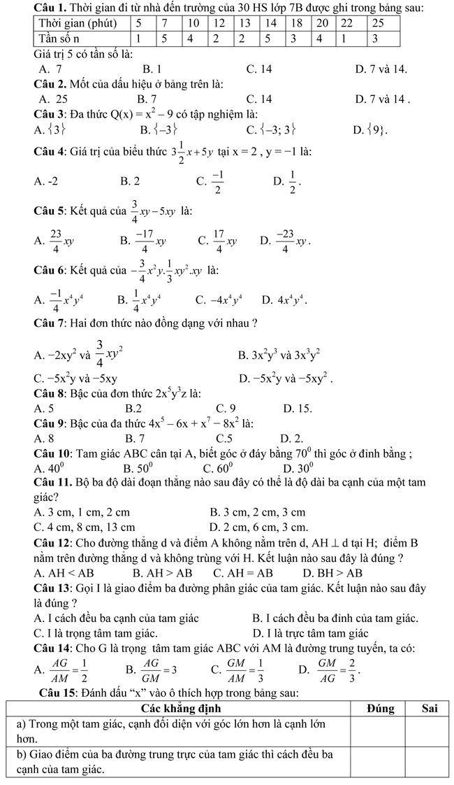 Trong mỗi câu từ 1 đến 14 đều có 4 phương án trả lời A, B, C, D; trong đó chỉ có một phương án đúng. Hãy khoanh tròn chữ cái đứng trước phương án đúng.