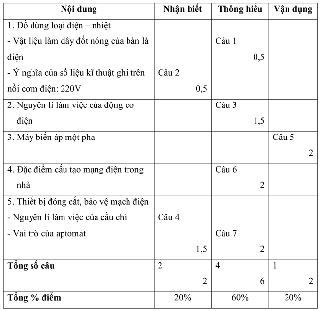 KIỂM TRA MÔN CÔNG NGHỆ, HỌC KÌ II, LỚP 8