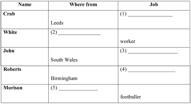 I. LISTENING: Listen to some people talking about themselves and fill in the missing information. (2.5 pts)