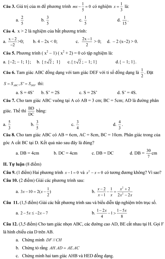 Trong mỗi câu từ câu 1 đến câu 8 đều có 4 phương án trả lời a, b, c, d; trong đó chỉ có một phương án đúng. Hãy khoanh tròn chữ cái đứng trước phương án đúng.