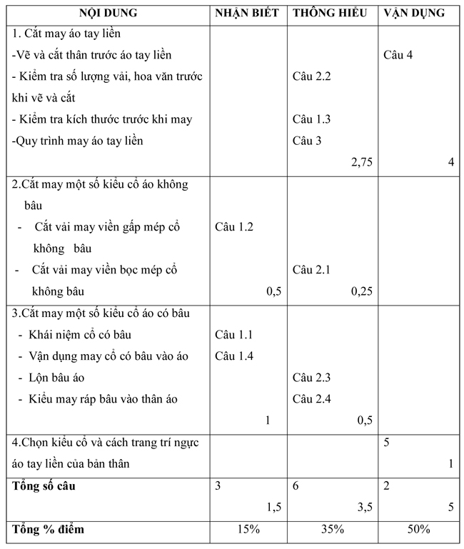 A. MA TRẬN (BẢNG HAI CHIỀU) MODUN CẮT MAY