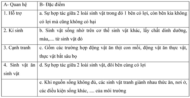 Câu 2: Hãy lựa chọn thông tin ở cột A sao cho phù hợp với thông tin ở cột B: (2đ)