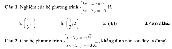 d. Hệ phương trình trên có hai nghiệm.