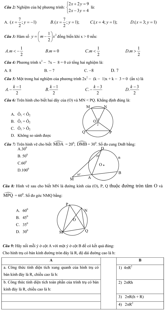 Trong mỗi câu từ câu 1 đến câu 8 đều có 4 phương án trả lời a, b, c, d; trong đó chỉ có một phương án đúng. Hãy khoanh tròn vào chữ cái đứng trước phương án đúng.