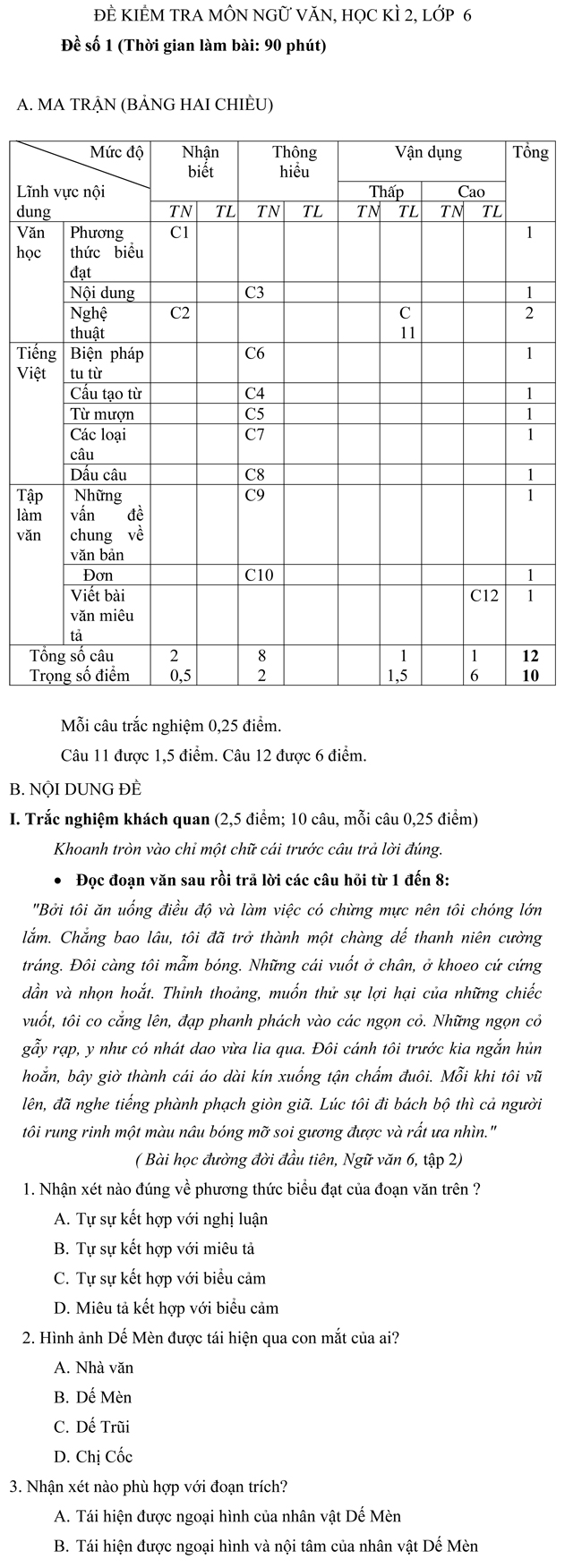 Tìm hiểu thêm »Đề kiểm tra học kì II môn Ngữ văn dành cho học sinh THCS lớp 6 - Đề số 1