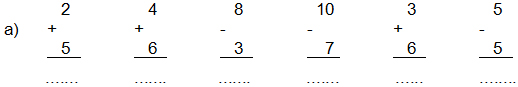b) 2+ 2 + 5 = ........ 8 + 0 - 6 = .............