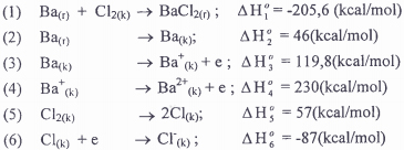 Câu 2: Tính giá trị năng lượng mạng lưới tinh thể ion của hợp chất BaCl2. Cho biết entanpi chuẩn của các quá trình sau: