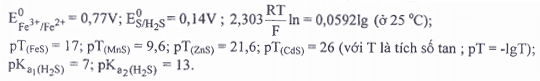 Câu 2: Dung dịch A gồm FeCl3 0,10M, MnCl2 0,10M, ZnCl2 0,01M, CdCl2 0,1M. Sục khí H2S vào dung dịch A đến bão hòa (nồng độ H2S bão hòa = 0,10M), thu được kết tủa B. Xác định thành phần hóa học của B?