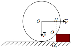 Một vật hình trụ đồng chất có khối lượng m = 100kg, bán kính tiết diện R = 15cm. Buộc vào hình trụ một sợi dây ngang có phương đi qua trục hình trụ, kéo với lực F = 500N. Tìm điều kiện chiều cao h = O1O2 để hình trụ có thể vượt qua được.
