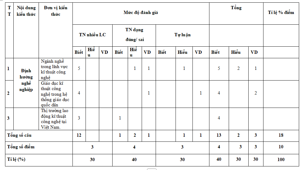 Ma trận đề kiểm tra giữa kì 2 Công nghệ 9