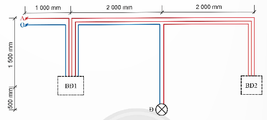Câu 4: Quan sát sơ đồ lắp đặt mạch điện cầu thang, xác định các thiết bị được sử dụng cho việc lắp đặt mạch điện: