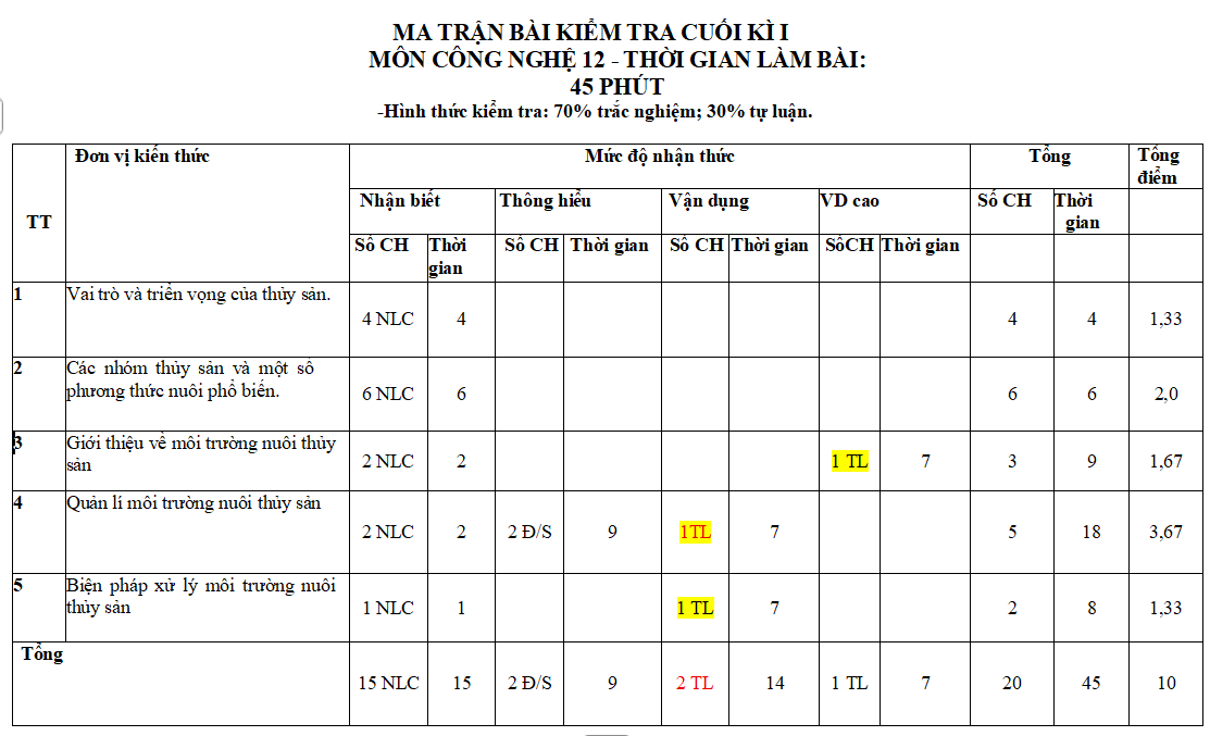 Lưu ý: Đề kiểm tra học kì 1 Công nghệ Nông nghiệp 12 Kết nối tri thức năm 2025 có cấu trúc như sau. Tùy theo yêu cầu của từng Sở mà thầy cô ra đề cho các em nhé.