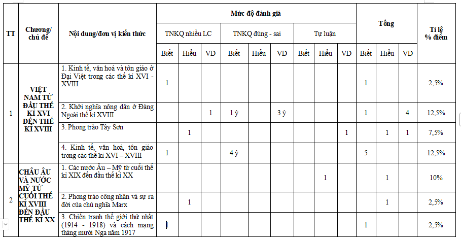 Lưu ý: Đề thi cuối kì 1 Lịch sử 8 Chân trời sáng tạo có cấu trúc như sau. Tùy theo yêu cầu của từng Sở mà thầy cô ra đề cho các em nhé.