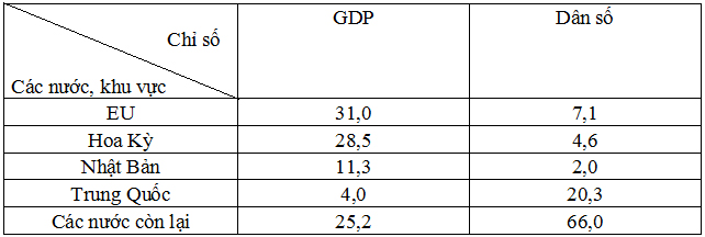 TỈ TRỌNG GDP, DÂN SỐ CỦA EU VÀ MỘT SỐ NƯỚC TRÊN THẾ GIỚI – NĂM 2004