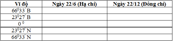 a. So sánh độ dài ngày và đêm ở một số vĩ độ theo bảng dưới đây: