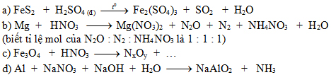 Hoàn thành các phương trình phản ứng sau theo phương pháp thăng bằng electron.