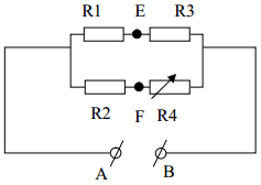 - Điều chỉnh biến trở cho đến khi vôn kế chỉ số 0. Tìm hệ thức giữa các điện trở R1, R2, R3 và R4 khi đó và tính R4.