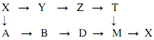 Biết X là nguyên tố có tổng số hạt trong nguyên tử là 40; Y, Z, T, M đếu là các hợp chất của X.