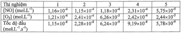 a. Xác định bậc phản ứng theo O2, theo NO và bậc phản ứng chung.