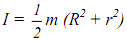 Biết momen quán tính của hình trụ với R, r là bán kính ngoài, bán kính trong của hình trụ .