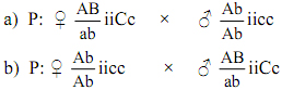 Ở tằm dâu, tính trạng màu sắc kén chịu sự kiểm soát của ba cặp gen Aa, Ii và Cc ở trên nhiễm sắc thể số 2, 9 và 12 tương ứng. Mỗi gen trội A hoặc C quy định kén trắng, nhưng tổ hợp AC cho kén vàng. Gen trội I ức chế hoàn toàn sự biểu hiện màu vàng của kén. Gen trội B quy định tằm da khoang, alen b cho tằm da trơn. Khoảng cách giữa hai lôcut A và B trên nhiễm sắc thể là 20cM.