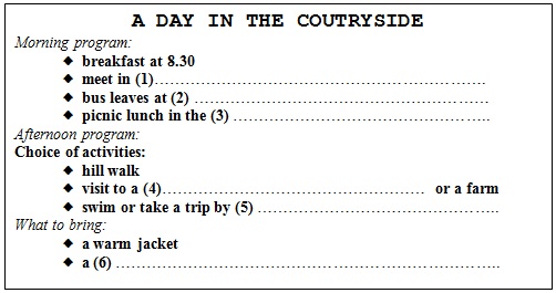 PART 2: You will hear a tourist guide talking to a group of people about a trip to the countryside. For each question, fill in the missing information in the numbered space: (1.5 points)