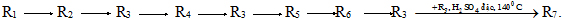 Xác định công thức các chất R1, R2, R3, R4, R5, R6, R7 (thuộc hợp chất hữu cơ) và viết các phương trình phản ứng biểu diễn dãy chuyển hóa trên (mỗi mũi tên chỉ viết một phương trình). Biết R1 tác dụng với I2 tạo ra hợp chất có màu xanh.