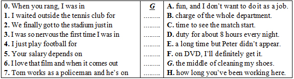 Question 2. Match the two halves of the sentences. Write your answer on the answer sheet.