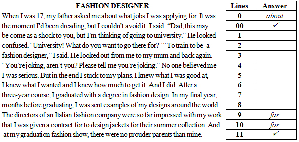 Question 3. Read the text below and look carefully at each line. Some of the lines are correct but some have a word which should not be there. If a line is correct, put a tick (√) at the end of the line. If a line has a word which should not be there, write the word at the end of the line. Some lines have been done as examples.