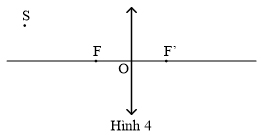 Một điểm sáng S nằm ngoài trục chính và ở phía trước một thấu kính hội tụ, cách trục chính 2cm, cách mặt thấu kính 30cm. Tiêu cự của thấu kính f = 10cm như hình 4.