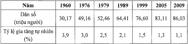 a. Trên cùng một hệ trục tọa độ, hãy vẽ biểu đồ thích hợp thể hiện dân số và tỉ lệ gia tăng tự nhiên của dân số nước ta thời kỳ 1960-2009