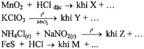 Cho các khí X, Y, Z, M phản ứng với nhau (từng đôi một) ở điều kiện thích hợp. Hãy hoàn thành và viết các phương trình phản ứng hóa học xảy ra.