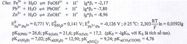 Dung dịch A gồm Fe(NO3)3 0,05 M; Pb(NO3)2 0,10 M; Zn(NO3)2 0,01 M.