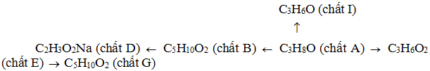 Xác định công thức cấu tạo của các chất A, B, D, E, G, I và viết phương trình hóa học biểu diễn sự biến hóa trên.