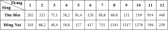 Lưu lượng nước trung bình trên sông Thu Bồn và sông Đồng Nai. (Đơn vị : m3/s)