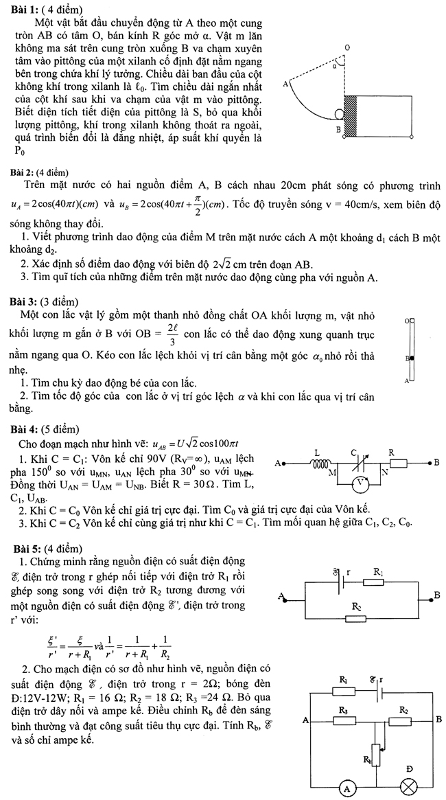 KỲ THI CHỌN HỌC SINH GIỎI CẤP TỈNH NĂM HỌC 2011 – 2012 Khóa ngày: 17 / 11 / 2011 Môn thi: VẬT LÝ Cấp: THPT Thời gian làm bài: 180 phút (Không kể thời gian phát đề) |