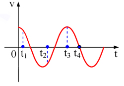 Câu 3: Đồ thị vận tốc - thời gian của một vật dao động cơ điều hoà được cho như hình vẽ bên. Tìm phát biểu đúng: