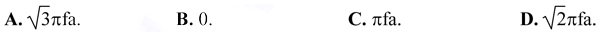 Câu 5: Một sóng cơ có bước sóng λ, tần số f và biên độ a không đổi, lan truyền trên một đường thẳng từ điểm M đến điểm N cách M một đoạn 7λ/3. Tại một thời điểm nào đó, tốc độ dao động của M bằng 2πfa, lúc đó tốc độ dao động của điểm N bằng: