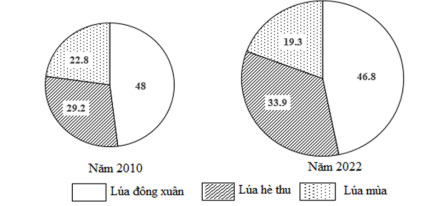 Biểu đồ quy mô, cơ cấu sản lượng lúa cả năm phân theo mùa vụ của nước ta năm 2010 và 2022