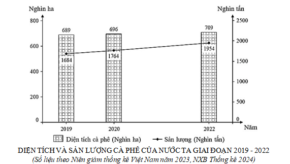 A. Sản lượng cà phê tăng, năng suất giảm.
