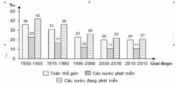 A. Cơ cấu tỉ suất sinh thô của thế giới và các nhóm nƣớc thời kì 1950-2015