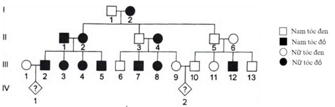 III. Xác xuất để IV.2 có màu tóc đỏ là 1/6.
